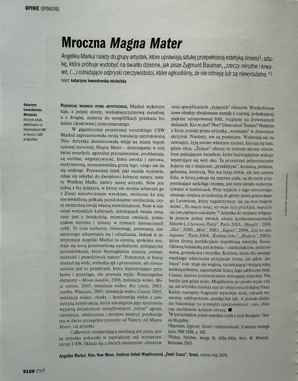 2021, « La science peut-elle inspirer l’activité artistique ? C’est l’une des questions les plus importantes posées par Angelika Markul, dont l’exposition est visible à OP ENHEIM à Wrocław. »
